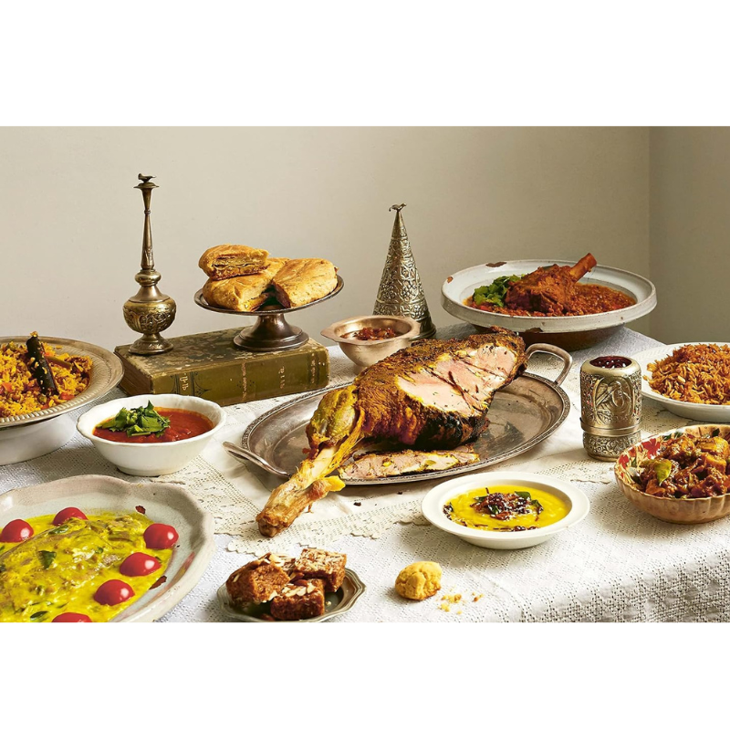 Inside, you’ll find a rich variety of traditional recipes such as slow-cooked lamb stews, tamarind and coconut fish curries, spiced quail, fennel and pea salads, lentil dishes, and delicate saffron- and cardamom-infused desserts. Each recipe reflects the hallmark of Parsi cooking—bold yet balanced flavours, aromatic spices, and a deep sense of home-style comfort.